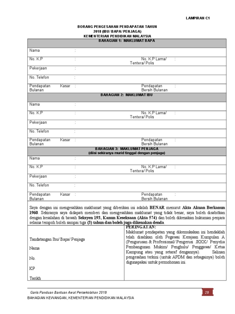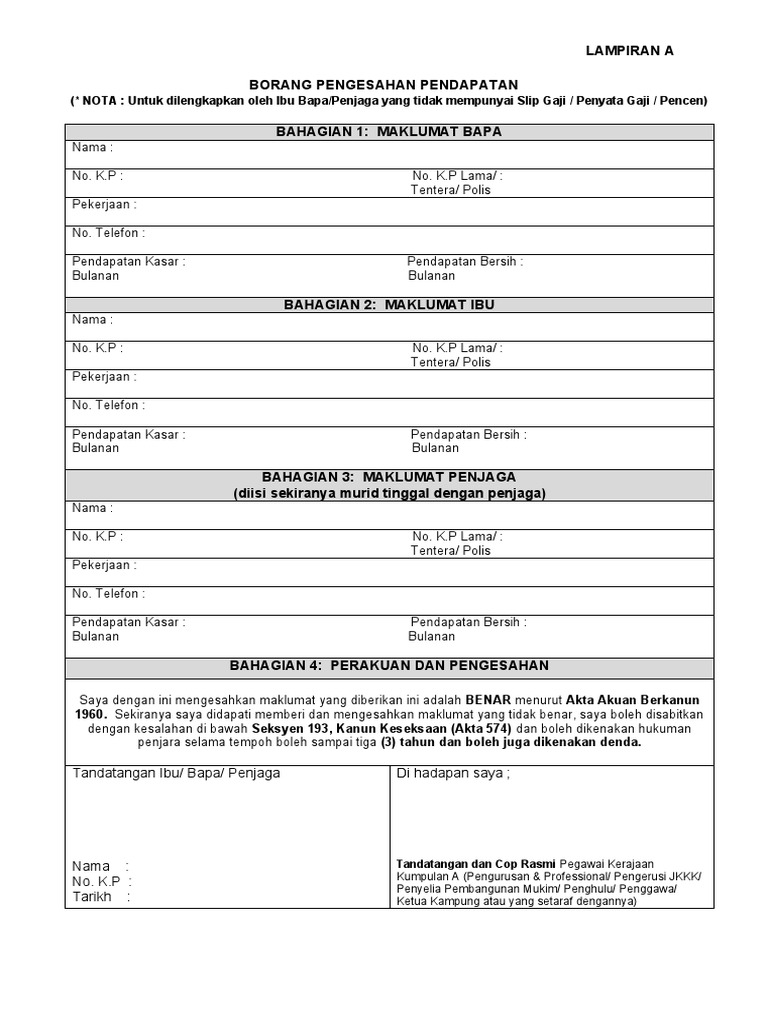 Borang Pengesahan Pendapatan Keluarga Pdf